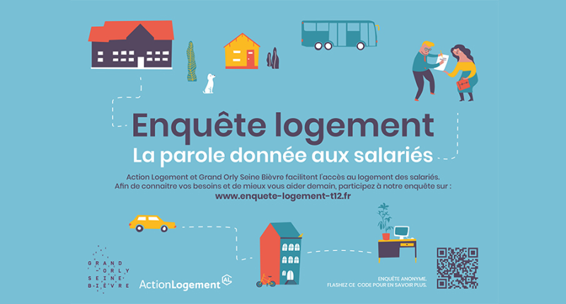 Afin de faciliter le logement des salariés travaillant sur le territoire de l’EPT 12 Grand Orly Seine Bièvre, Action Logement et l’Etablissement Public Territorial Grand-Orly-Seine Bièvre lancent une enquête, en ligne, pour évaluer leurs besoins en logement.