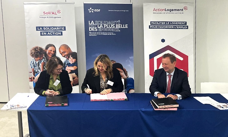 Le 11 janvier 2024, l’entreprise EDF représentée par Cécile VENEL, Directrice Partenariats, Relations Externes, Consommateurs EDF Commerce, Action Logement Services représentée par Olivier RICO, Directeur général, et l’association Soli’AL représentée par Florence DETIMMERMAN-RUEL, Directrice générale, ont signé une convention de partenariat visant à répondre plus efficacement aux besoins des ménages accompagnés par les équipes d’Action Logement Services** et de Soli’AL, clients d’EDF, en situation de vulnérabilité et de précarité énergétique.