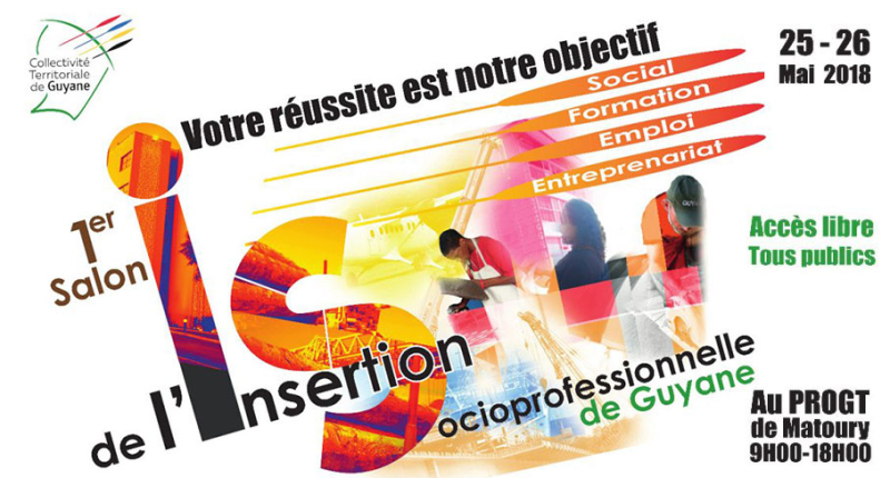 Cette manifestation organisée par la Collectivité Territoriale de Guyane accueillera l’ensemble des acteurs œuvrant dans le champ de l’insertion.Cette première édition aura lieu les 25 et 26 mai de 9h00 à 18h00.