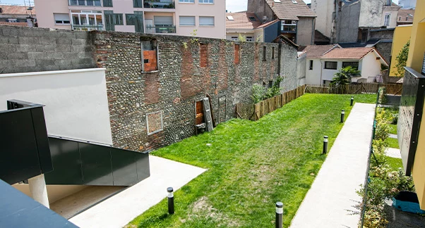 Le bien a été proposé au Col pour réaliser une opération en accession sociale à la propriété afin de diversifier l’offre de logements du quartier, en proposant des T3/T4 en accession sociale pour les familles. Ce projet est l’un des premiers projets en accession sociale à la propriété réalisé sur le centre-ville de Pau. Ce projet de qualité sur le plan urbain et architectural s’insère parfaitement dans le tissu urbain existant en s’organisant en deux parties : un immeuble d’habitat collectif de 11 logements en front de rue (1 T2, 9T3, 1 T4) et de l’habitat intermédiaire en fond de parcelle composé de 4 logements. Le projet, monté en habitat participatif, offre également des espaces partagés tels qu’une salle de convivialité, une buanderie, une terrasse et un jardin partagé. Le stationnement est géré en rez de chaussé du bâtiment sur rue.